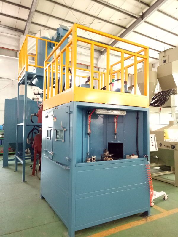 涡轮增压器壳体喷砂机特点: 1.设备安装简易,无需安装成本 2.设备主体结构紧凑,外形美观,可独立使用,也可配至生产线中使用。 3.控制互锁,顺序启动操作,避免错误操作,操控简单便利,自动化程度高。 4.喷枪配有总的调压阀及压力表显示工作压力,气路上均配有独立的球阀和控制电磁阀,在检修调试过程中非常方便实用。 5.机械运转部分设计先进,充分考虑使用的工况环境和批量化生产使用情况,密封好,耐磨,强度高,运行稳定可靠。运转部件大部分都进行镀锌处理,既防腐又美观。 6.本机配备技术先进除水雾系统,除水雾效果好,工艺先进,符合环保标准; 7.易损件少,更换简单快捷,维修方便;