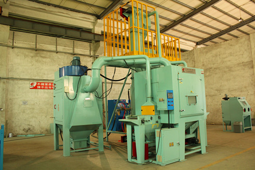 五 砂料的回收 喷砂后的砂料及粉尘通过风力循环送至储砂斗。主回砂管由特制的高耐磨无缝钢管制作而成,管内衬托高耐磨的硅胶板,可以保护管道的磨损。回收方式采用上进风,下抽的形式,有效的把砂料回收到储砂斗内,回收效率可达到到99%。
